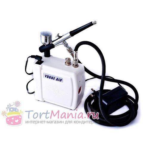 Аэрографом можно наносить не только изображения и надписи, но и создать эффект плавного перехода тонов на Вашем изделии. Компрессор кондитерского аэрографа VogueAir компактный и очень легкий (всего 0,45 кг), но при этом обладает хорошей мощностью.