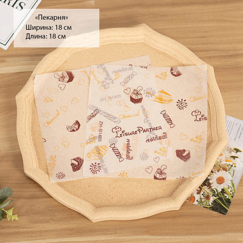 Бумага упаковочная для бенто-торта «Пекарня» 18 х 18 см (5шт)