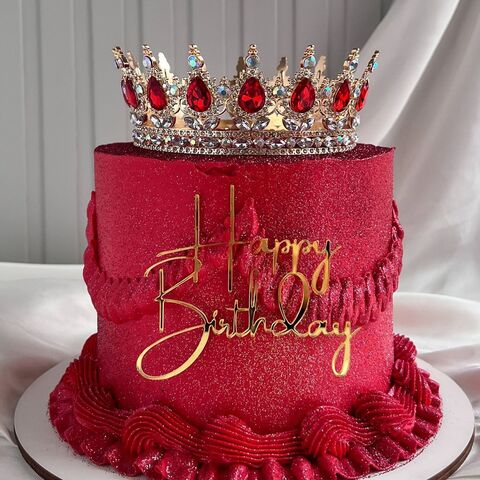 Декоративная корона на торт, золото (Красные камни)