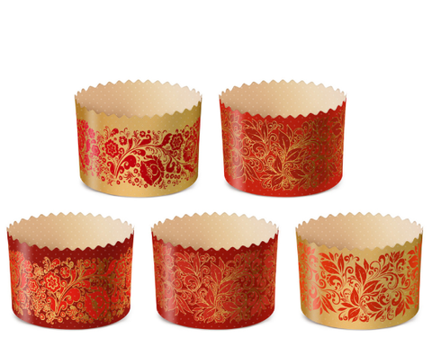 Обратный звонокумажные формы – один из самых популярных вариантов для выпечки. Данная форма предназначена для одноразового использования, изготовлена из пергаментной бумаги с декоративными узорами. Донышко выполнено из гофрированной бумаги. Стенки и дно формы с микроперфорацией. Формы не требуется дополнительно смазывать при готовке. Не требует извлекания из формы, что позволяет выступает не только как форма для выпечки, но и является упаковкой для кулича.