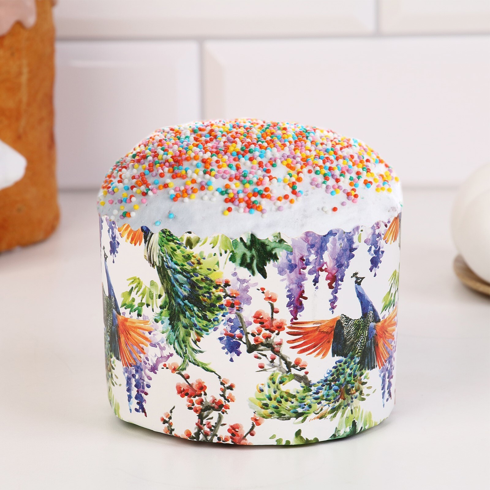 Форма бумажная для кулича «Павлины» 500 гр, 134/100 мм