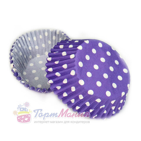 Форма бумажная круглая 50*30 мм (фиолетовые в горошек) 50 шт