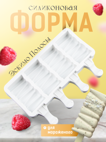 Описание для этикетки WB - ИП Наташа | Артикул: ЭскимоПолосы Наим: Форма для мороженого «Эскимо полосы», 4 ячейки Цвет: белый Состав: пищевой силикон 100% Страна: Китай |