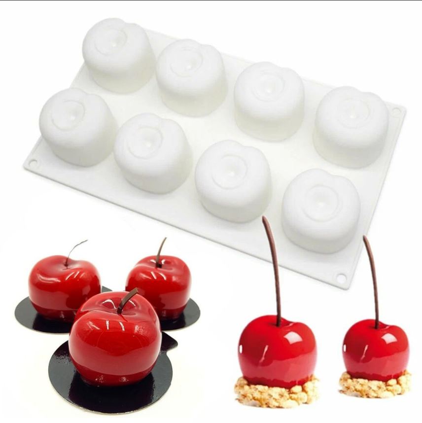 Обратный звонокФорма для муссовых десертов, очень проста в обращении, подойдет как начинающим так и профессиональным кондитерам. Форму не нужно специально смазывать растительным или сливочным маслом, присыпать мукой: десерт не прилипает к силикону и легко вынимается. Форма силиконовая в виде яблока(8шт в 1 форме). Пирожные оригинальный подарок на 14 февраля, в день рождения или просто хороший комплимент для Ваших близких людей.