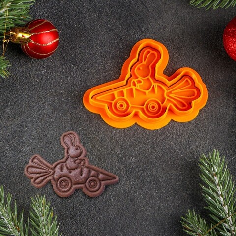 Форма для печенья «Зайка едет на морковке», штамп, вырубка 8 см