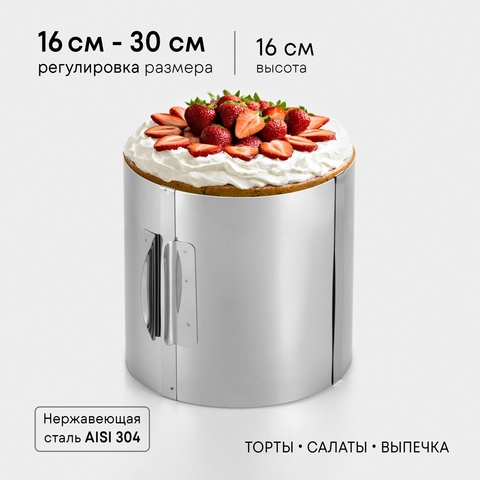Форма для выпечки и выкладки с регулировкой размера «Круг», высота 16 см, диаметр 16-30 см
