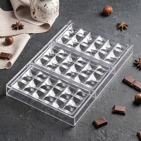 Форма поликарбонатная «Акапулько», 3 ячейки 27,5×17,5×2,5 см, ячейка 15,3×7,5×0,8 см