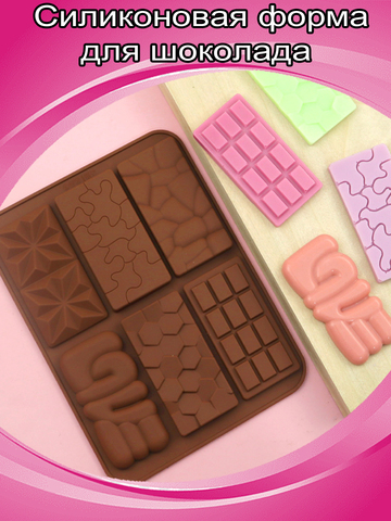 Силиконовая форма универсальная. Плитка представлена в виде уменьшеных 6 плиток разной текстуры. Отлично подойдет для создания шоколадного набора из 6 оригинальных плиточек. Так же украсит любой сладкий стол для ваших гостей на любой праздник.