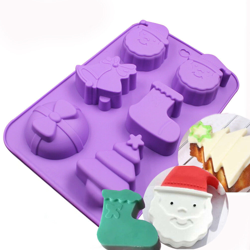 Форма состоит из 6 ячеек, где присутствуют изображение Санты Клауса и фигур в виде рождественских колокольчиков, сапожка, елочки и новогодней круглой игрушки. Данная композиция отлично подойдет для создания Новогоднего или рождественского подарочного набора.
