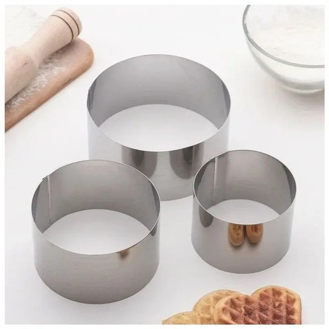 Каждое кольцо идеально подойдет для выпечки различных бисквитов прямо на противне в духовке. Так же удобно использовать для сборки торта и прочих десертов.