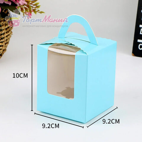 Коробка для 1 капкейка, с окном и ручкой (ГОЛУБАЯ)