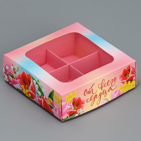 Коробка для 4 конфет «От всего сердца», 10.5 х 10.5 х 3.5 см