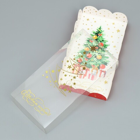 Коробка для кондитерских изделий с PVC крышкой «С Новым годом!», ёлочка, 10.5 × 21 × 3 см