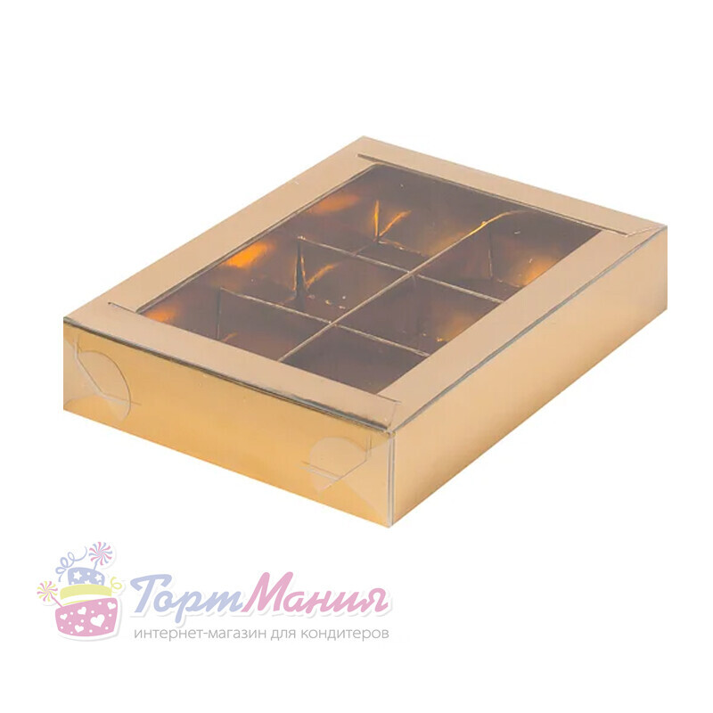 Коробка для конфет с пластиковой крышкой и внутренним разделителем.