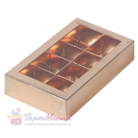 Коробка для конфет с пластиковой крышкой 190*110*30 (8) (золото)