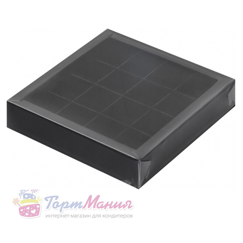 Коробка для конфет с пластиковой крышкой и внутренним разделителем.