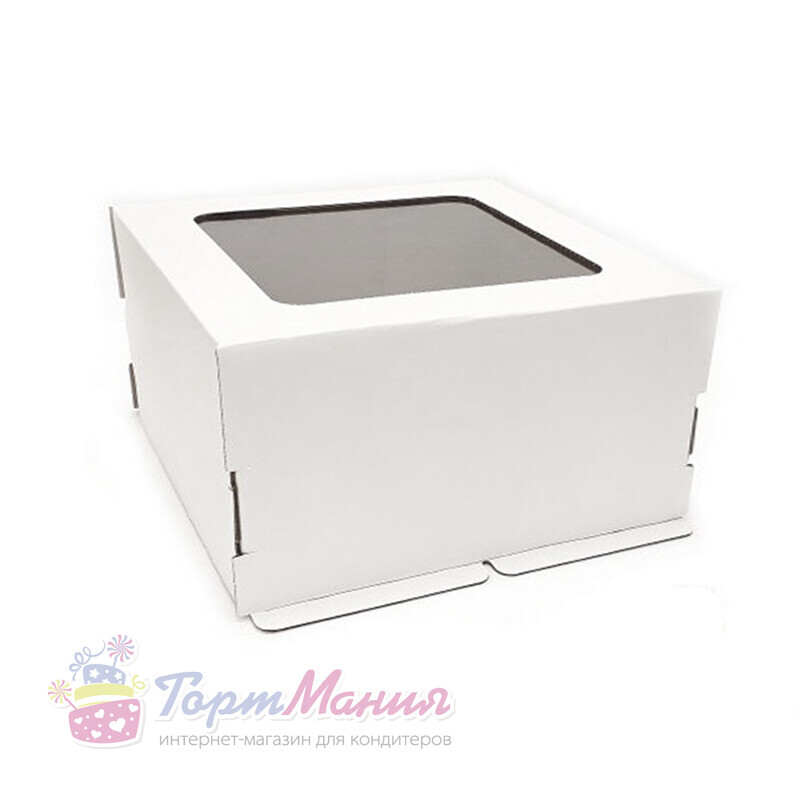 Коробка для торта, 300x300x130мм, гофрокартон, белая, с окном