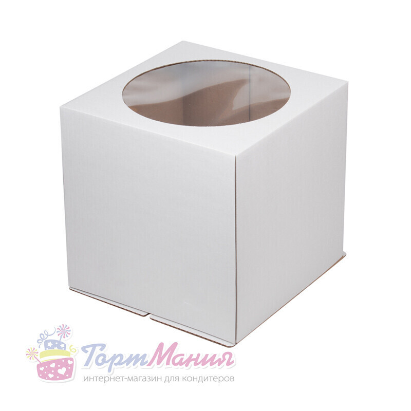 Коробка для торта с окошком, 240*240*260 мм (белая) гофрокартон