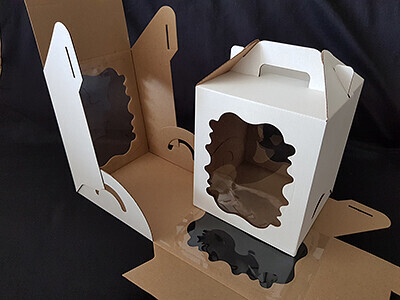 Коробка для торта с ручкой и боковым окном 180х180х220 мм