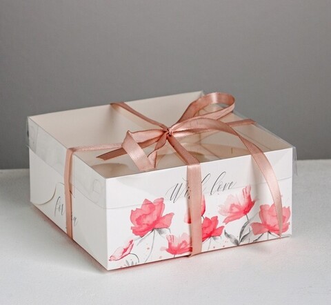 Коробка на 4 капкейка «For You with love», 16 × 16 × 7.5 см