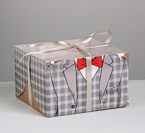 Коробка на 4 капкейка «Настоящему мужчине», 16 × 16 × 10 см