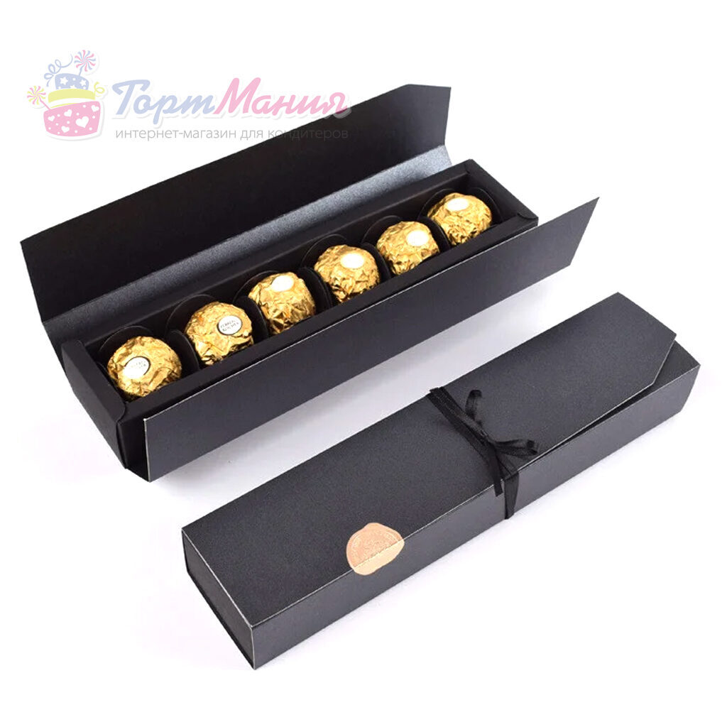 Коробка пенал на 6 конфет с вкладышами 24*5,5*3,5 см (ЧЕРНАЯ)
