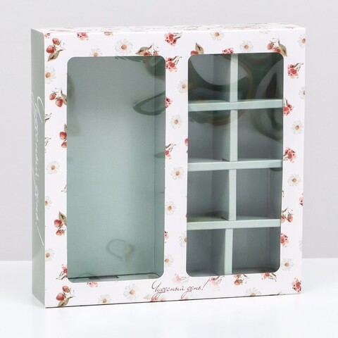 Коробка под 8 конфет + шоколад, с окном , "Чайный букет", тиффани, 17,7 х 17,85 х 3,85 см