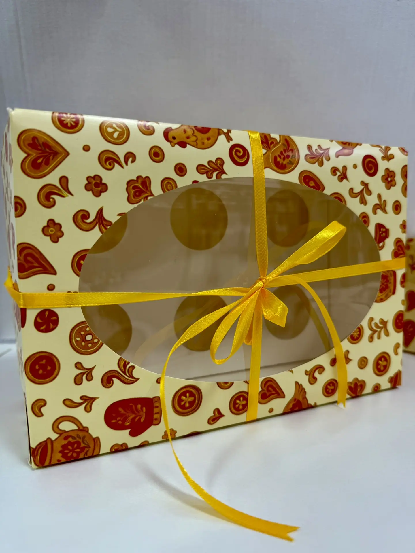 Коробка под капкейки с круглым окном 235х160х100 мм (6) (Сладкая матрешка)