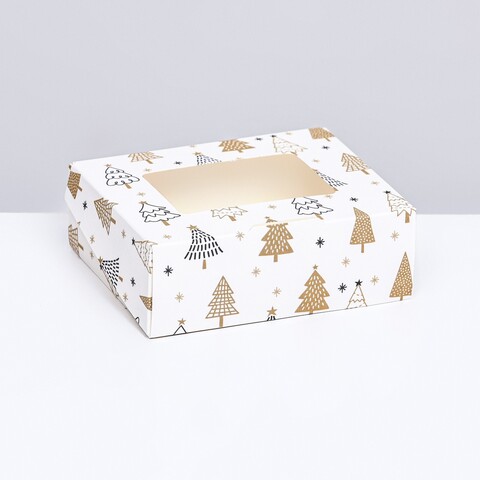 Коробка складная "Золотые ёлки", 10 х 8 х 3,5 см