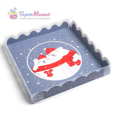 Коробочка для сладостей двухсторонняя «Белые медведи» 21х21х3 см