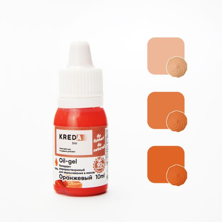 Содержит не менее 90% натуральных компонентов в составе. Гелевая формула обеспечивает отличное внедрение в основу. Обладает способностью окрашивать в яркие цвета. Как правило, гелевые жирорастворимые красители имеют пониженную концентрацию, т.к. в составе помимо основы-носителя есть компоненты, которые превращают его в жирорастворимый, тем самым разбавляя его. Формула Kreda оставляет цвет ярким, а концентрацию оптимальной для получения насыщенных оттенков при допустимых дозировках. Не имеют вкуса и запаха. Не изменяют свойства окрашиваемой основы (не разжижает, не загущает, не сворачивается и не выпадает в хлопья). Термостабильны, идеально подходят для выпечки – тесто сохраняет свой цвет после выпечки. Отличный выбор для домашнего приготовления десерто