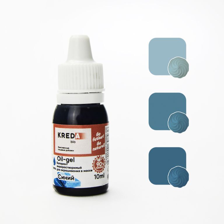 Содержит не менее 90% натуральных компонентов в составе. Гелевая формула обеспечивает отличное внедрение в основу. Обладает способностью окрашивать в яркие цвета. Как правило, гелевые жирорастворимые красители имеют пониженную концентрацию, т.к. в составе помимо основы-носителя есть компоненты, которые превращают его в жирорастворимый, тем самым разбавляя его. Формула Kreda оставляет цвет ярким, а концентрацию оптимальной для получения насыщенных оттенков при допустимых дозировках. Не имеют вкуса и запаха. Не изменяют свойства окрашиваемой основы (не разжижает, не загущает, не сворачивается и не выпадает в хлопья). Термостабильны, идеально подходят для выпечки – тесто сохраняет свой цвет после выпечки. Отличный выбор для домашнего приготовления десертов.