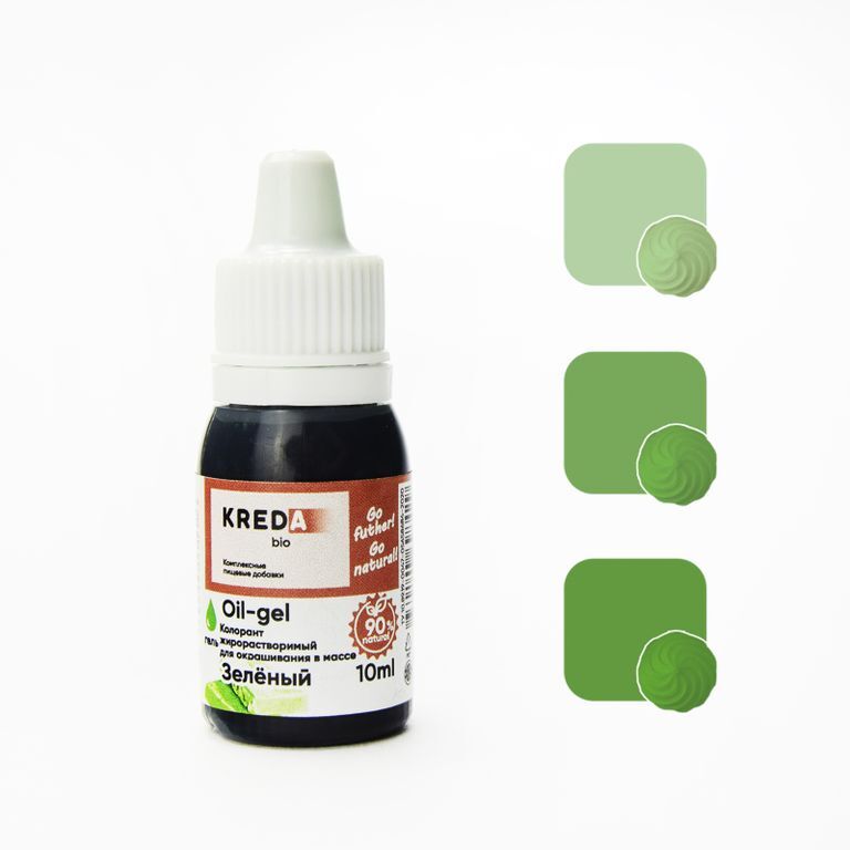 Содержит не менее 90% натуральных компонентов в составе. Гелевая формула обеспечивает отличное внедрение в основу. Обладает способностью окрашивать в яркие цвета. Как правило, гелевые жирорастворимые красители имеют пониженную концентрацию, т.к. в составе помимо основы-носителя есть компоненты, которые превращают его в жирорастворимый, тем самым разбавляя его. Формула Kreda оставляет цвет ярким, а концентрацию оптимальной для получения насыщенных оттенков при допустимых дозировках. Не имеют вкуса и запаха. Не изменяют свойства окрашиваемой основы (не разжижает, не загущает, не сворачивается и не выпадает в хлопья). Термостабильны, идеально подходят для выпечки – тесто сохраняет свой цвет после выпечки. Отличный выбор для домашнего приготовления десертов.