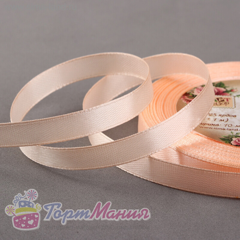Лента атласная, 10 мм 23 м, цвет персиковый