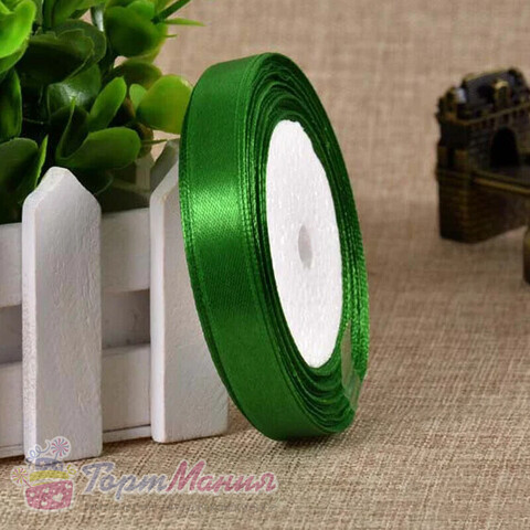 Лента атласная 12 мм (23 метра, цвет №19 зеленый)