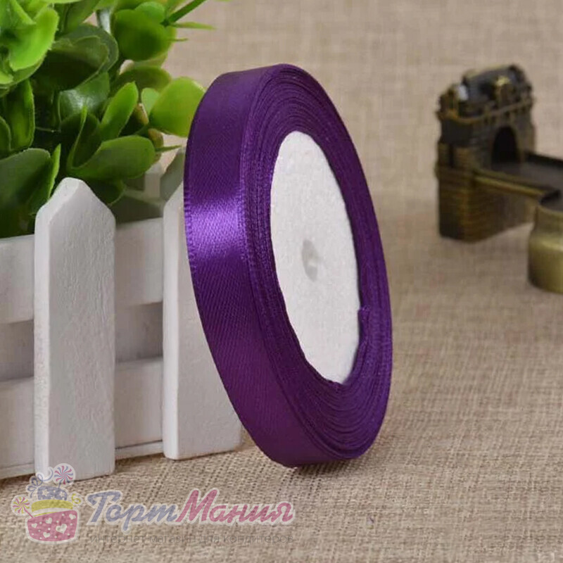 Лента атласная 12 мм (23 метра, цвет №35 темно-фиолетовый)