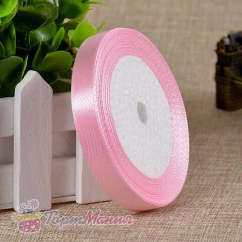 Лента атласная 12 мм (23 метра, цвет №4 нежно-розовый)
