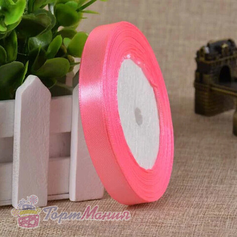 Лента атласная 12 мм (23 метра, цвет №5 ярко-розовый)