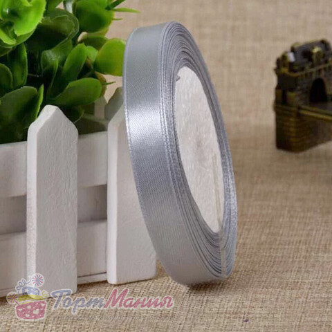 Лента атласная 12 мм (23 метра, цвет №59 серебряный)