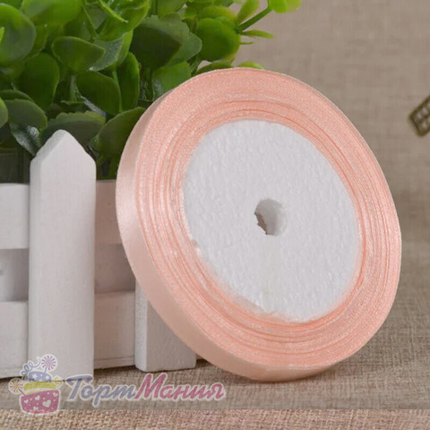 Лента атласная 12 мм (23 метра, цвет №7 персиковый)