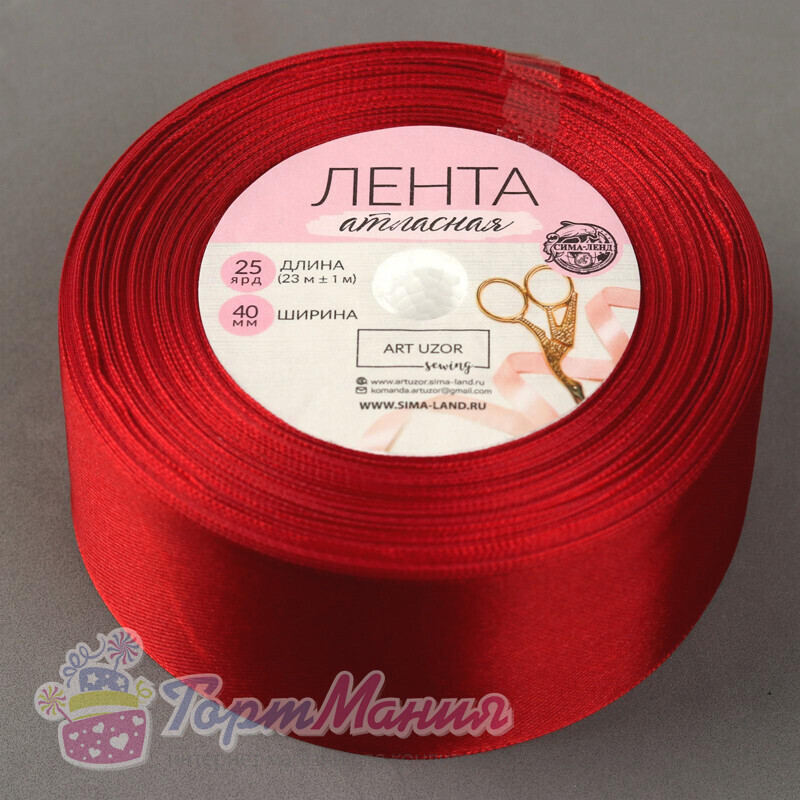 Лента атласная, 40 мм 23 м, цвет красный