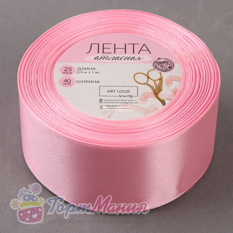 Лента атласная, 40 мм 23 м, цвет розовый