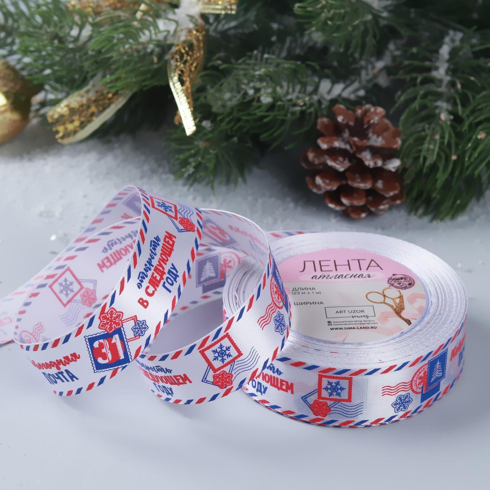 Лента атласная «Новогодняя почта», 25 мм, 23 м