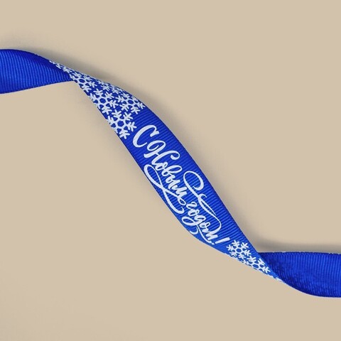 Лента декоративная репсовая «С Новым годом!», синяя, 2 см × 5 м