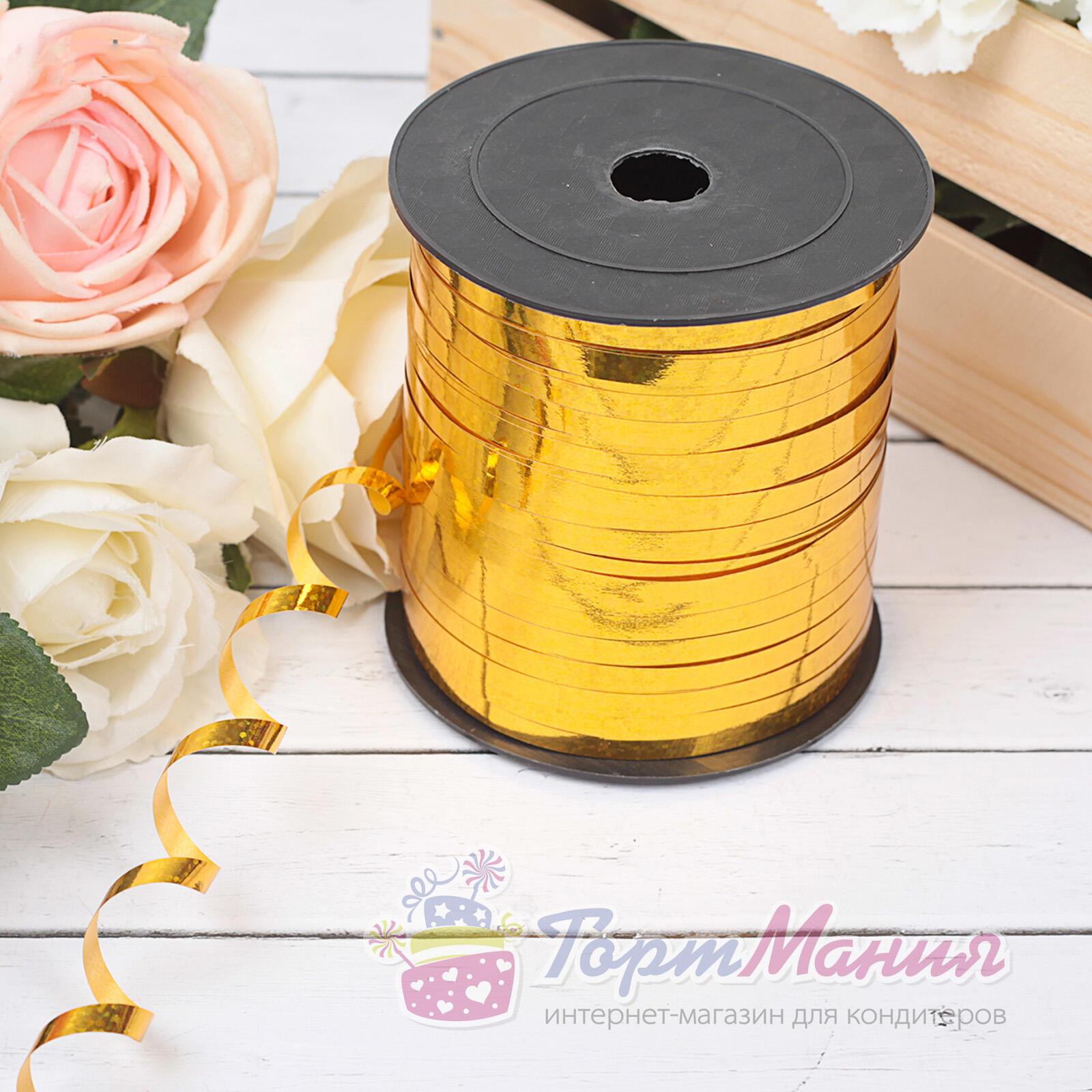 Лента голографическая 0,5 см х 225 м, золотая