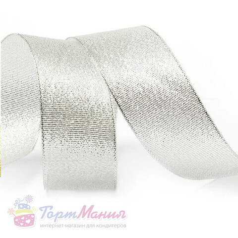 Лента парчовая 25 мм (22 метра, цвет серебро)