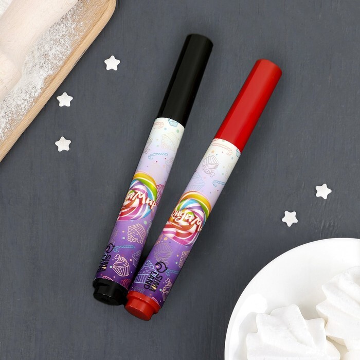 Обратный звонокПищевые фломастеры по виду напоминают обычные, но заправлены они не чернилами, а съедобными красителями разных цветов. Применяются для рисования, нанесения надписи на поверхность кондитерских изделий. Фломастеры можно использовать для декорирования печенья, пряников, тортов, пасхальных яиц, куличей и т. д.