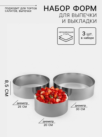 Набор форм для выпечки «Круг», 3 шт (d=20 см, d=25 см, d=30 см) высота 8,5 см