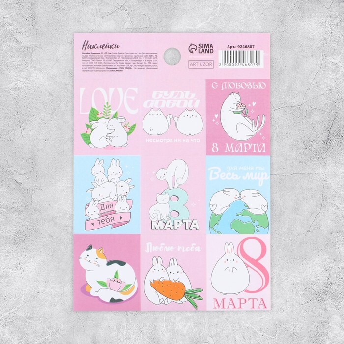Наклейки бумажные «Милые животные», 11 × 15,5 см