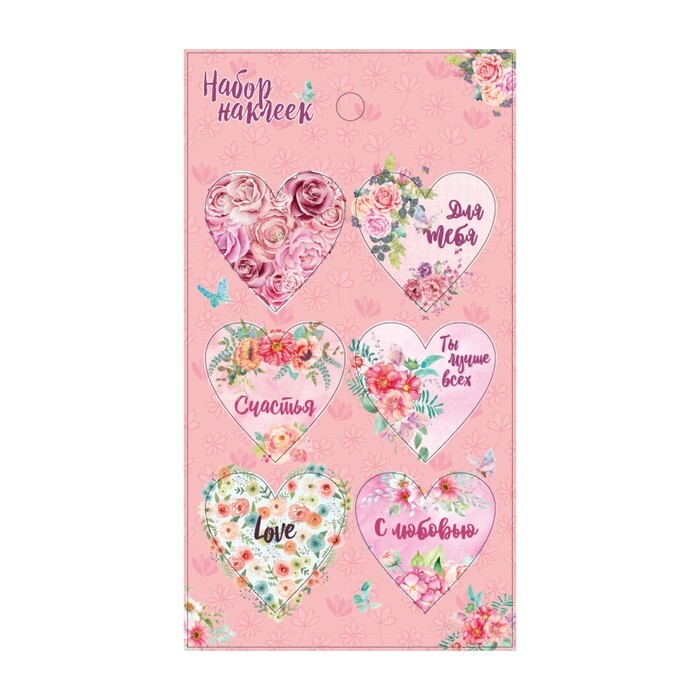 Наклейки для цветов и подарков "С любовью", розовые, 16 х 7,7 см
